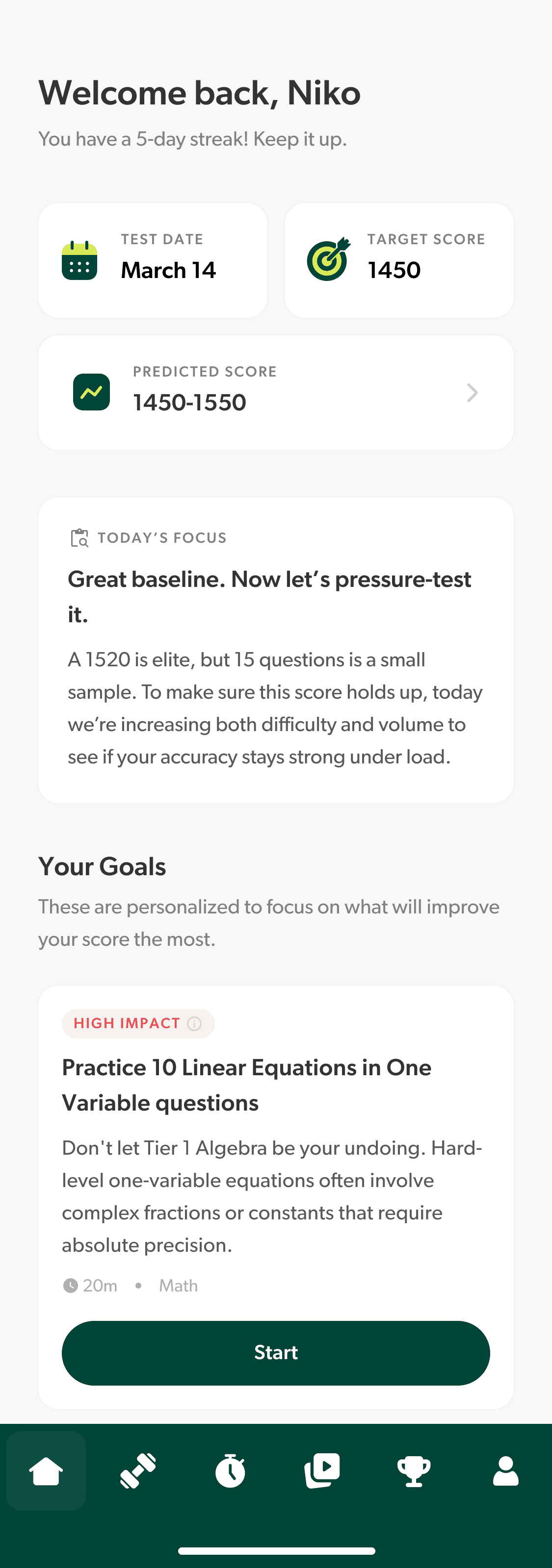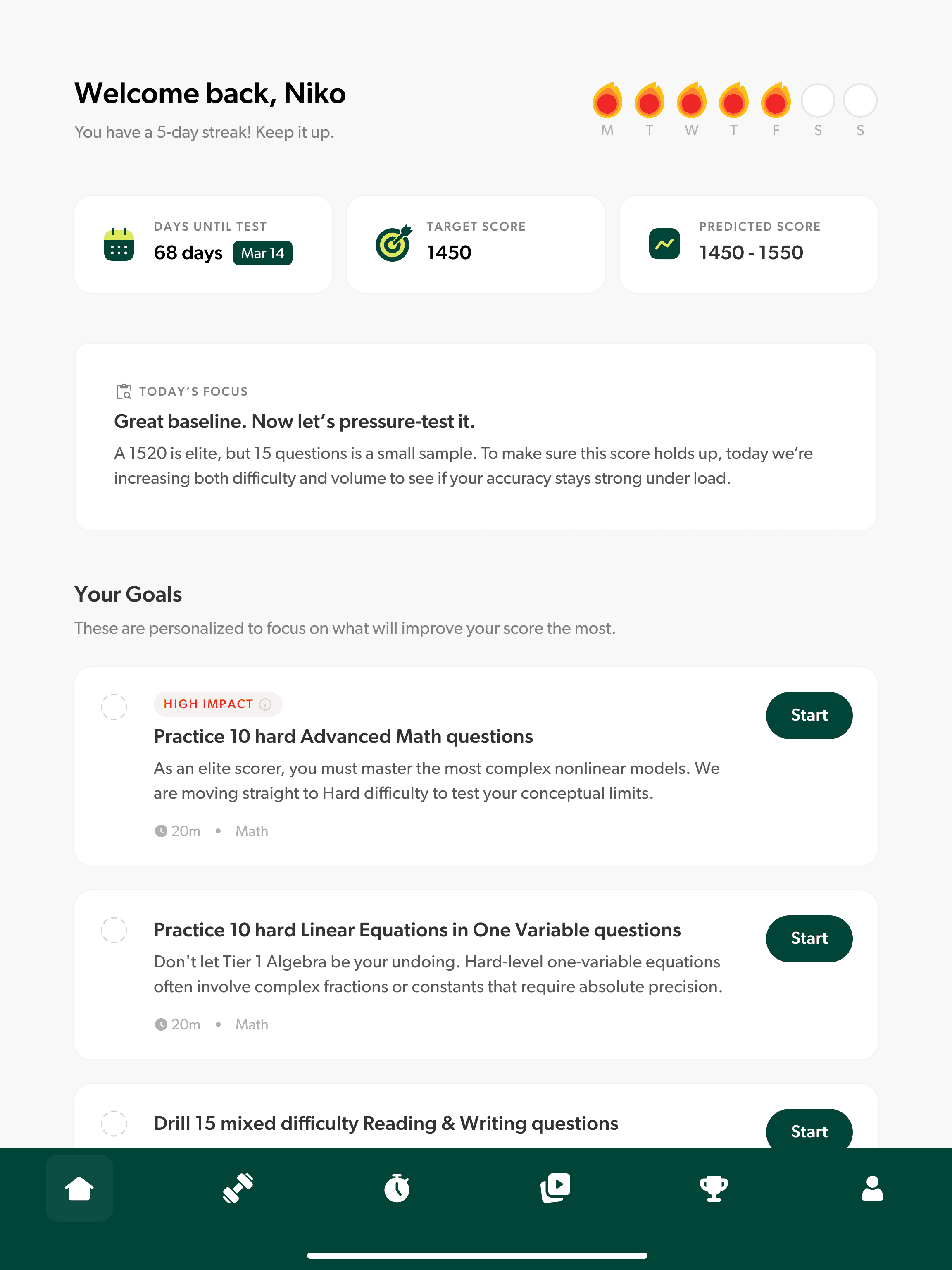 Both. We're built for your timeline, whether you're a long-haul marathoner or a last-minute crammer. Got time? Our structured Study Paths guide you step-by-step, like a gamified map, building your skills at a steady, low-stress pace. Need to cram? Go for it. You can "binge" our full-length adaptive tests, drill only the skills you need with Targeted Practice, and fast-track your learning with our expert explainer videos. Either way, it’s the same simple, affordable subscription for full access. We're ready when you are.