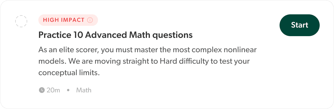 Linus is built for you. We have thousands of questions calibrated perfectly to the College Board's highest difficulty levels. Our "Targeted Practice" feature lets you filter and drill only Hard questions in the specific skills you need to perfect. Even better, we have a unique feature that lets you practice only the hard Module 2—letting you focus all your energy on the toughest content. You won't waste a minute on questions you've already mastered.